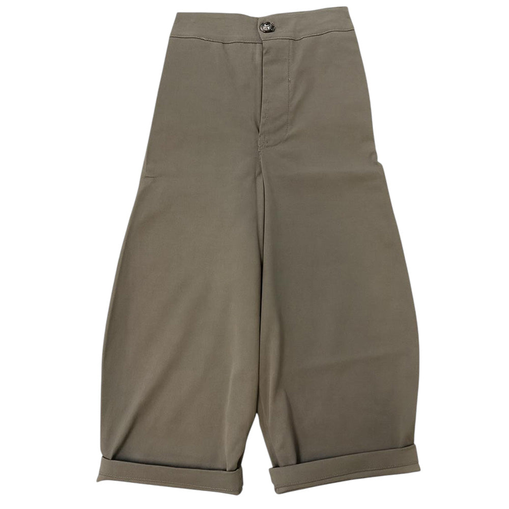 Pantaloni realizzati in cotone, caratterizzati da vita elasticizzata, due tasche laterali a filetto, un taschino sul retro e fondo con risvolto.
