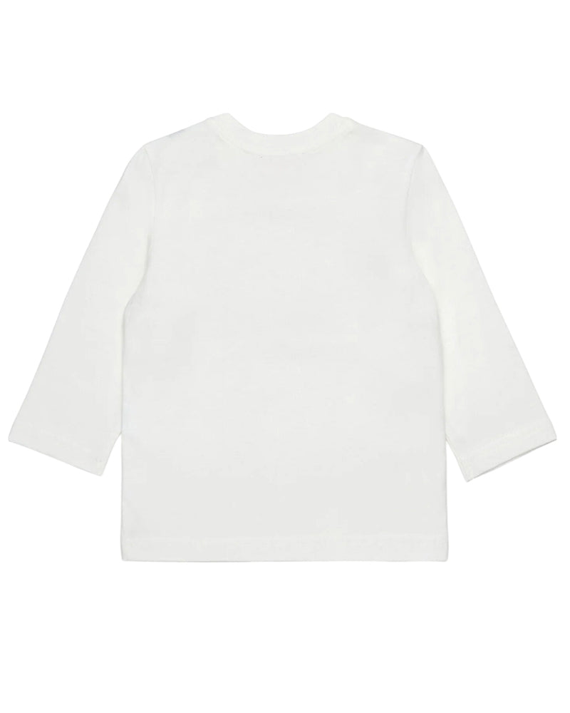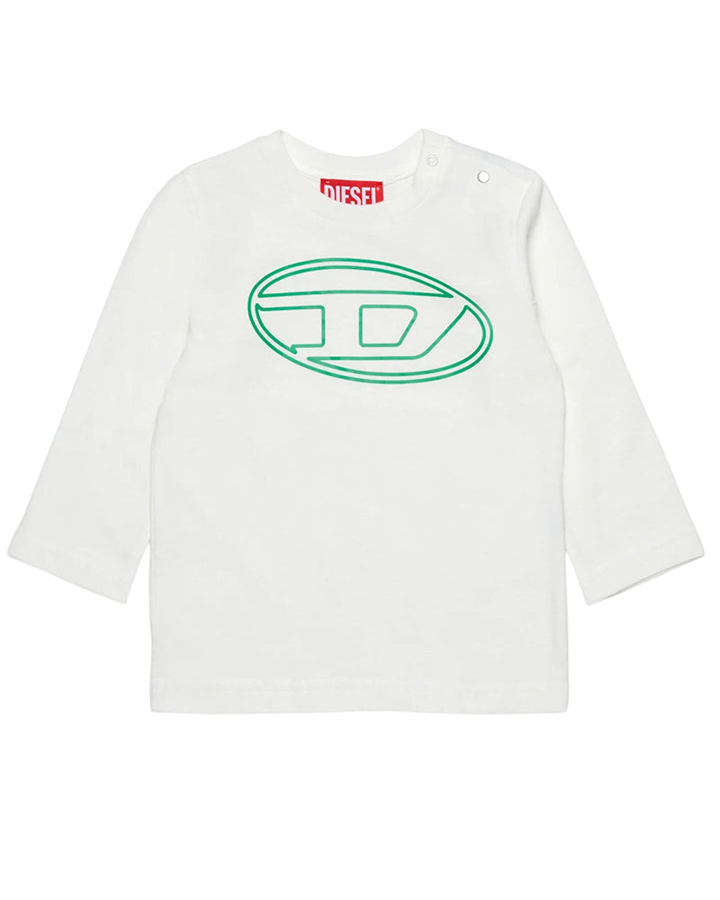 T-shirt bianca da neonato realizzata in jersey di cotone. Presenta collo tondo, maniche lunghe, chiusura con bottoncini a pressione sulla spalla e orlo dritto. È decorata con stampa logo Oval D sulla parte anteriore.