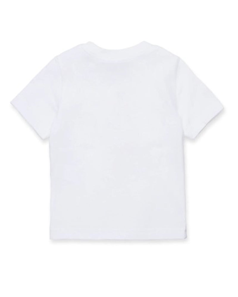 T-shirt realizzata in jersey di cotone. Presenta collo rotondo a costine, maniche corte, chiusura con bottoncini a pressione sulla spalla e orlo dritto. È decorata con stampa logo sulla parte anteriore.