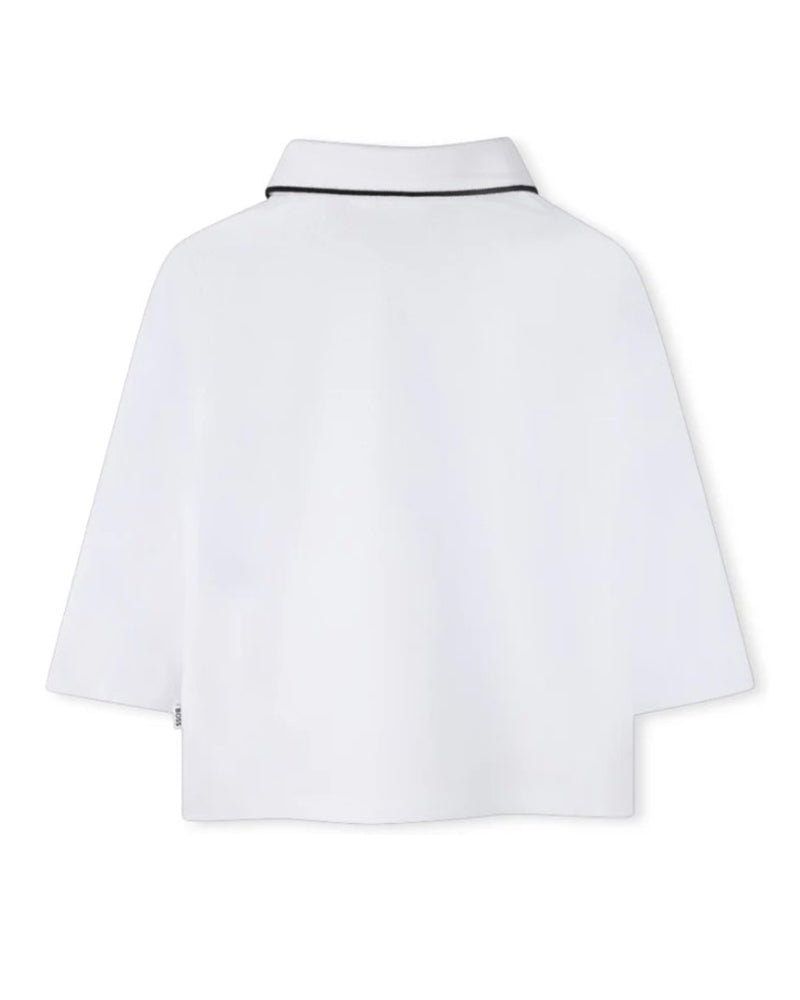 Polo realizzata in piqué di cotone a maniche lunghe, colletto a punta e chiusura frontale con bottoni. È decorata con logo sul petto.
