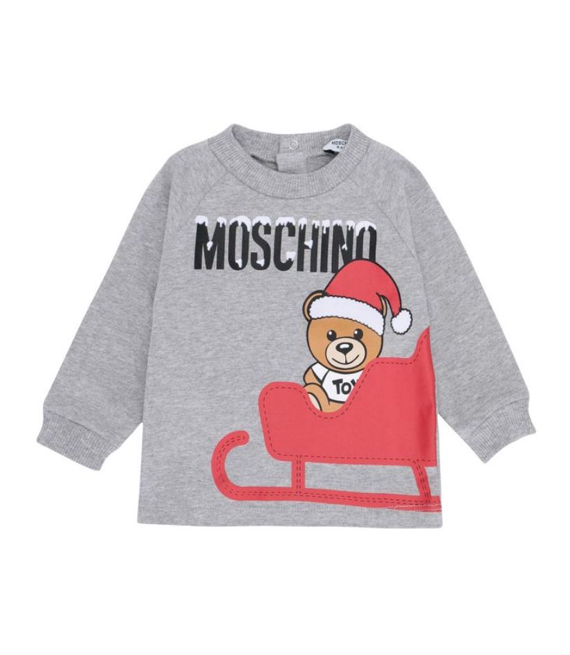 Langärmliges T-Shirt mit Rundhalsausschnitt, Logo und Aufdruck auf der Vorderseite und Druckknopfverschluss auf der Rückseite.