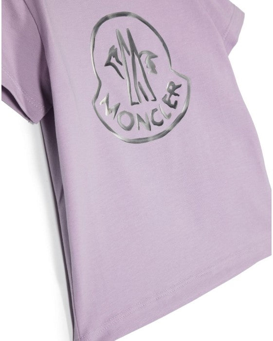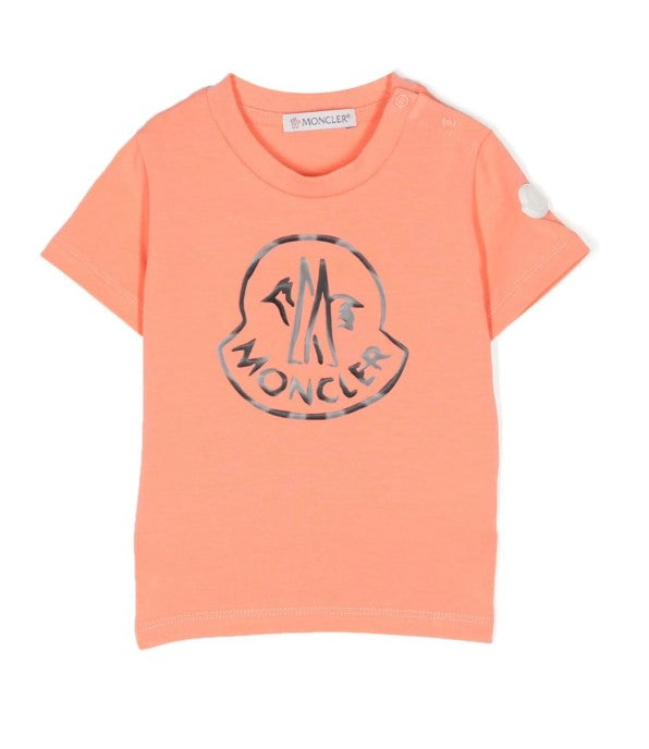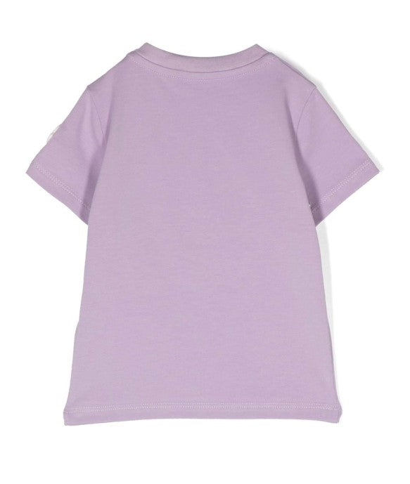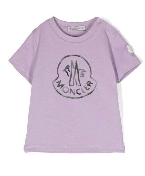 T-Shirt mit Rundhalsausschnitt, kurzen Ärmeln, Logoapplikation in schillernder Farbe auf der Vorderseite, Verschlussclips an der Schulter.