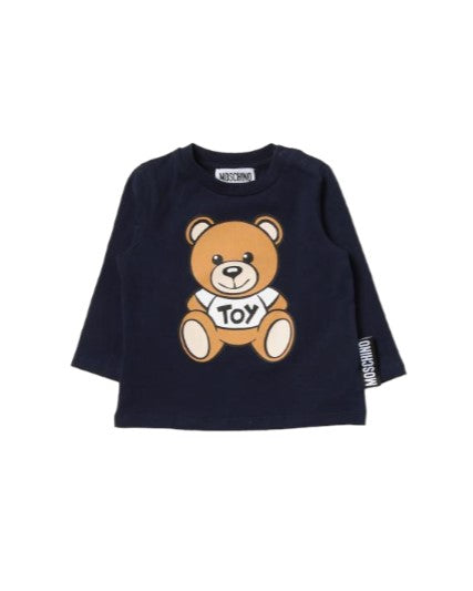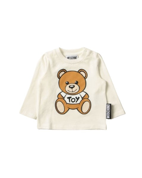 Langärmliges T-Shirt mit Rundhalsausschnitt, ikonischem Aufdruck auf der Vorder- und Rückseite und Druckknopfverschluss an der Schulter.