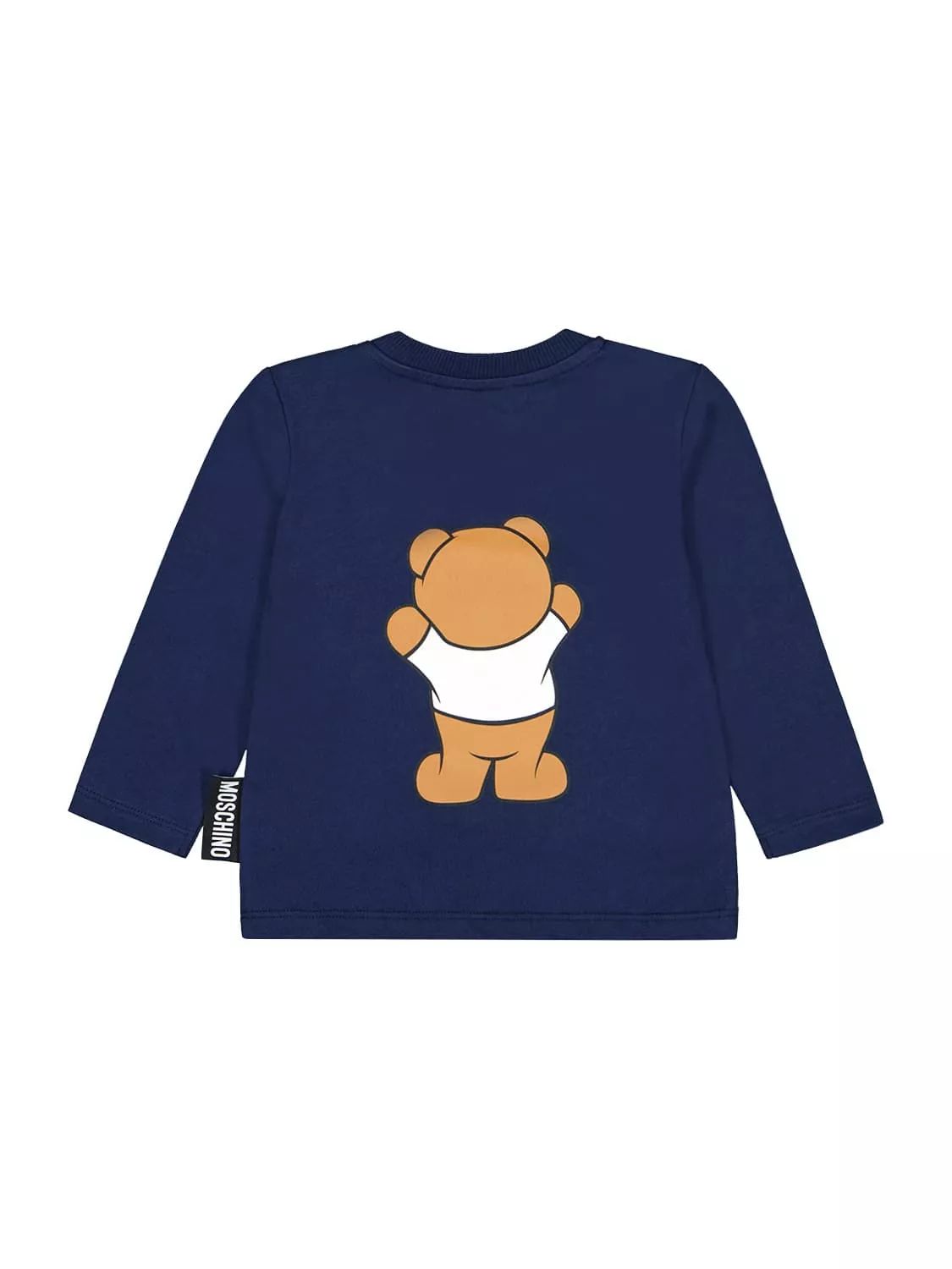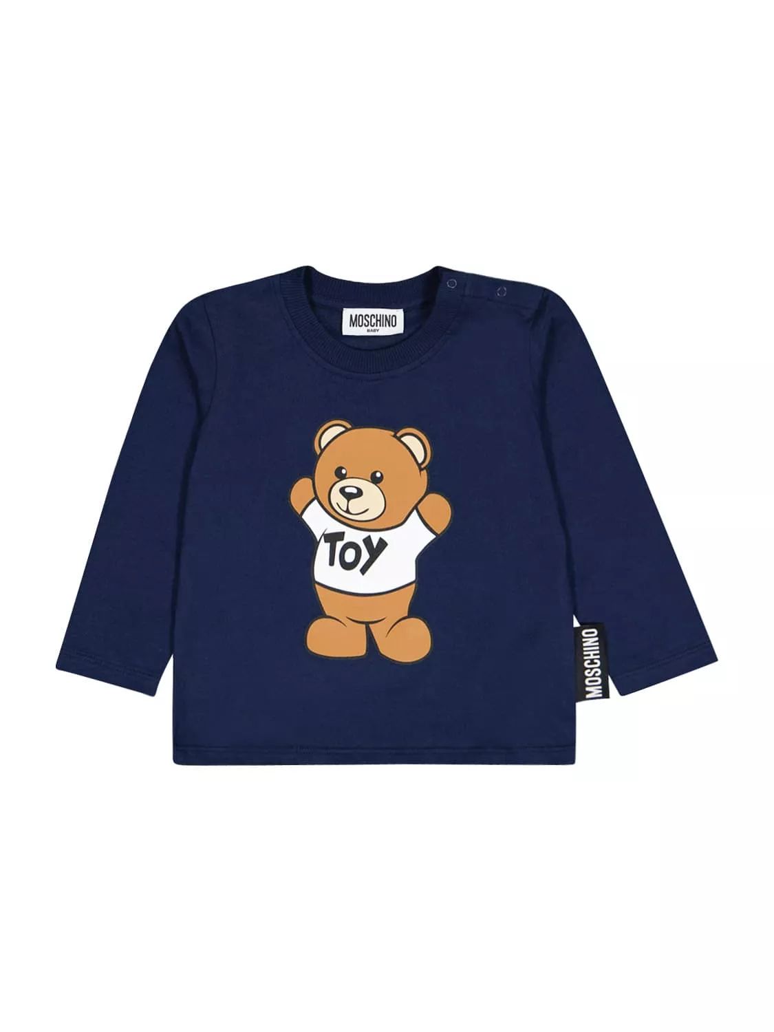 Langärmliges T-Shirt mit Rundhalsausschnitt, ikonischem Aufdruck auf der Vorder- und Rückseite und Druckknopfverschluss an der Schulter.