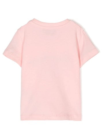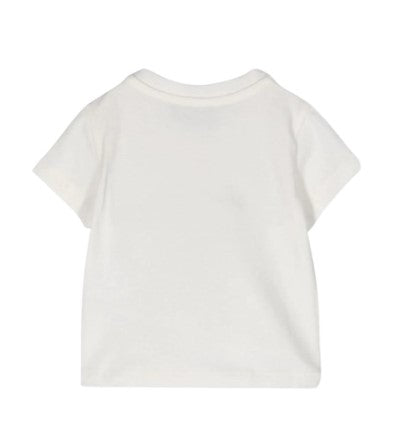 Kurzarm-T-Shirt mit Rundhalsausschnitt, Knopfverschluss an der Schulter, aufgesticktes Logo und Symbol mit Applikationen.