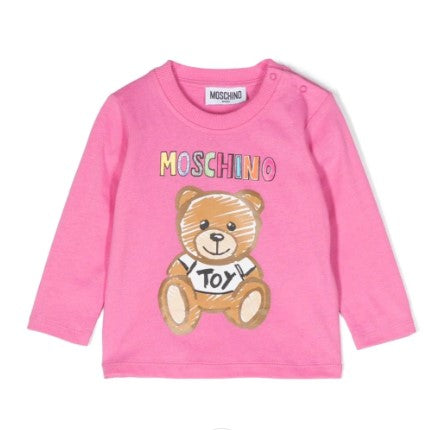T-Shirt aus warmer Baumwolle mit Rundhalsausschnitt, langen Ärmeln, Knopfverschluss an der Schulter, Logo- und Symboldruck auf der Vorderseite.