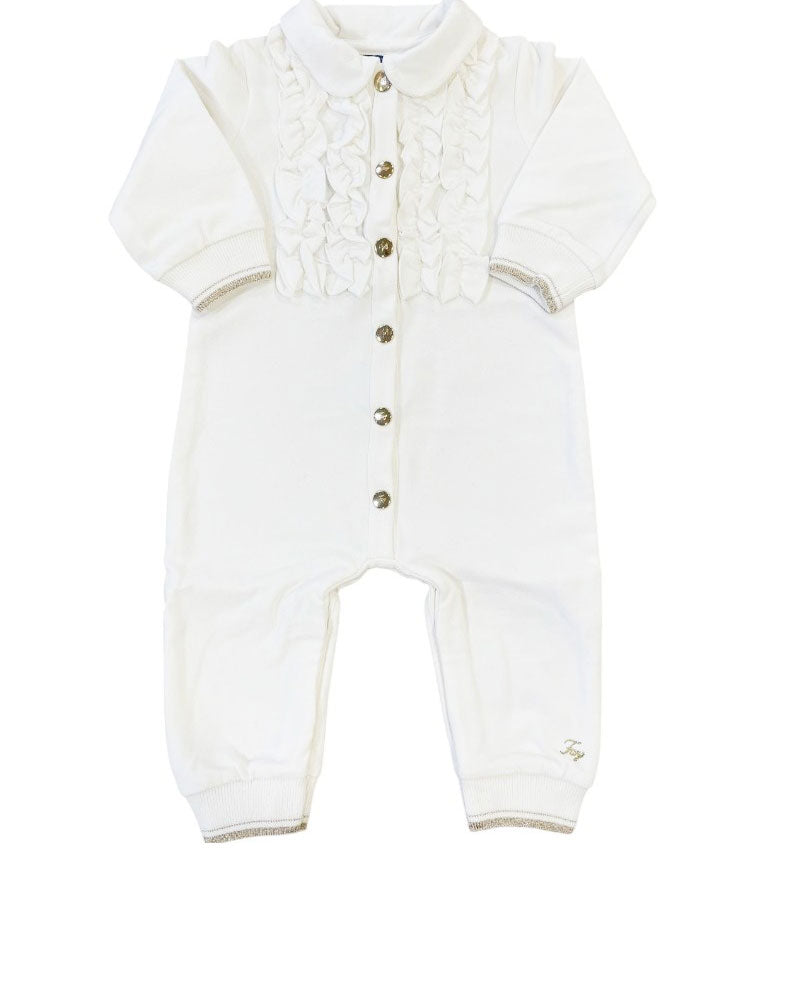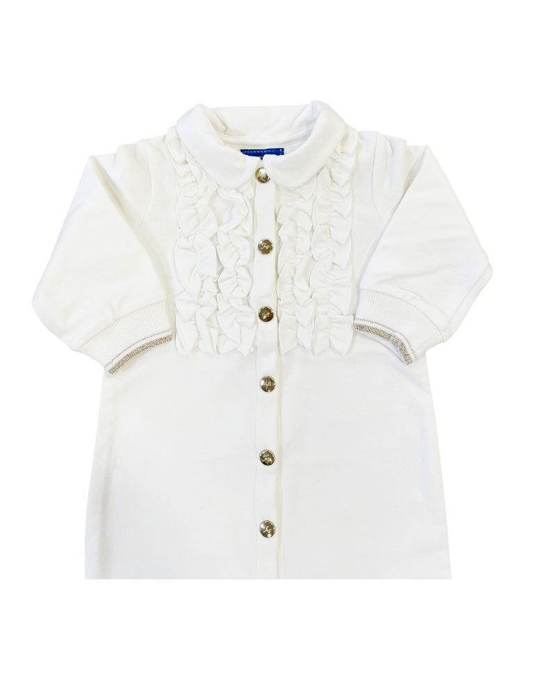 collo tondo ruches sul davanti e bottoncini colore oro,