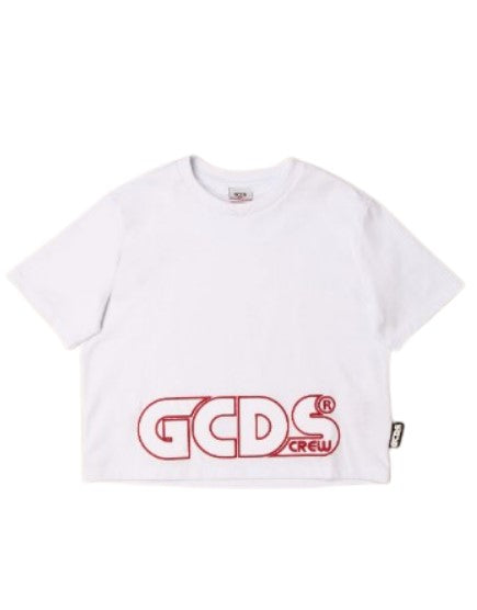 T-Shirt mit Rundhalsausschnitt, kurzen Ärmeln, verkürztem Modell und Logo auf der Vorderseite.