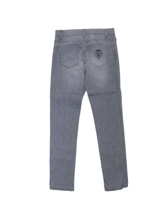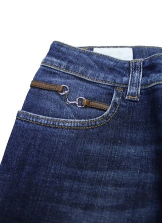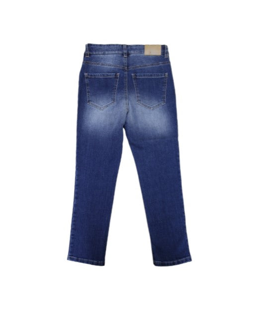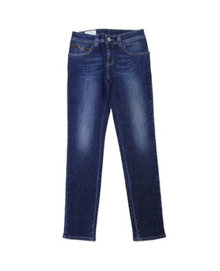 Jeans aus Baumwolldenim, Five-Pocket-Modell. Vorderer Verschluss mit Knopf und Reißverschluss.