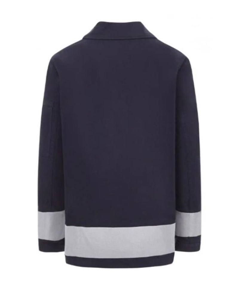 Jacke mit aufgesetzten Taschen, Reißverschluss und Hakenverschluss.
