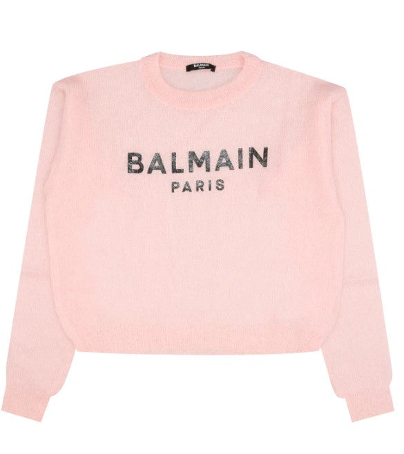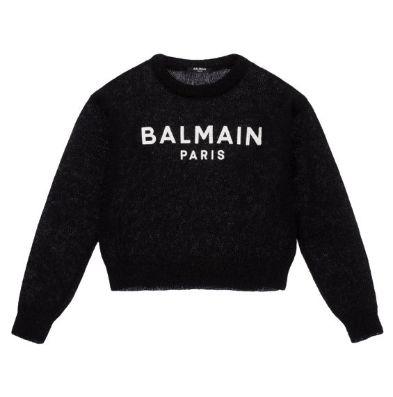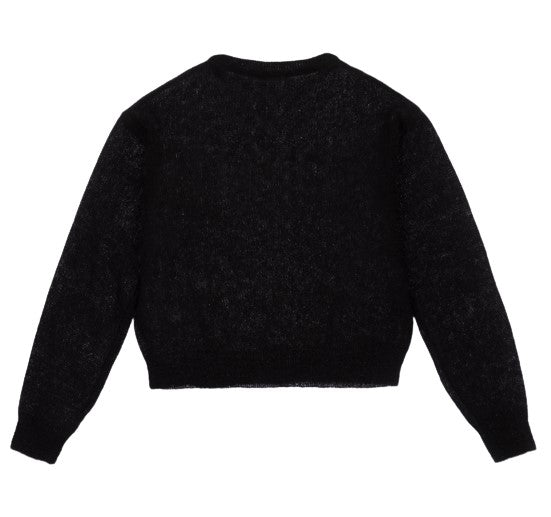 Crop-Pullover aus Mohairwolle mit Rundhalsausschnitt und kontrastierendem Logo auf der Vorderseite.