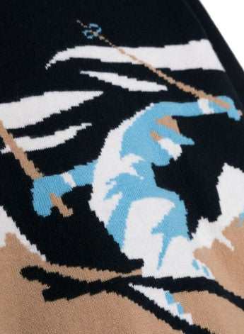 Wollpullover mit Rundhalsausschnitt und Muster auf der Vorderseite.