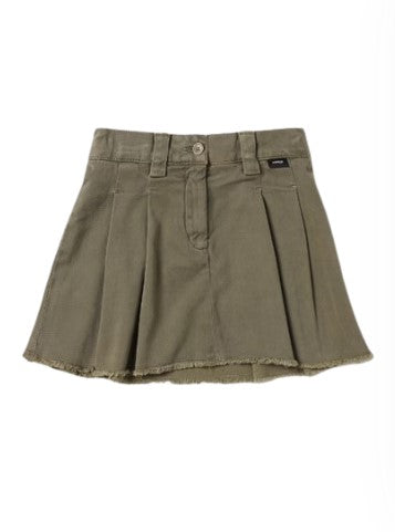 Faltenrock aus Baumwolldenim, Knopf- und Reißverschluss vorne.