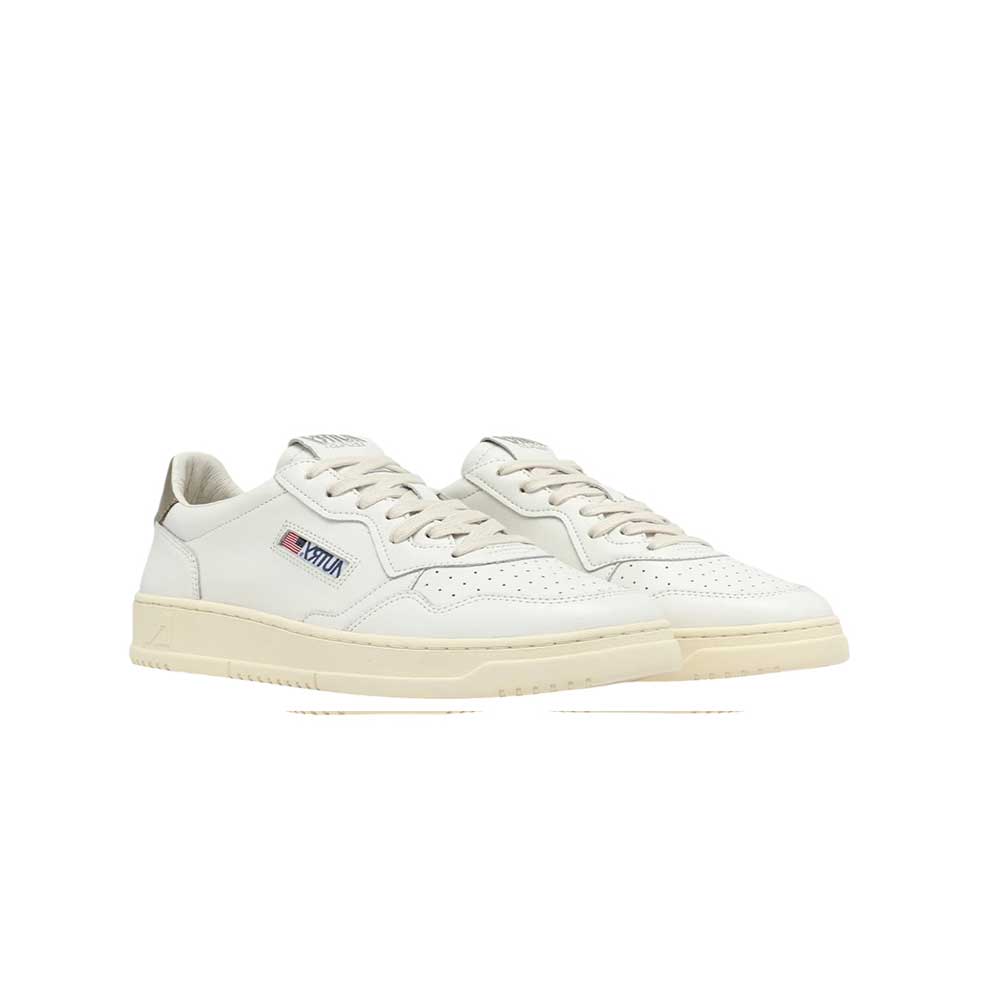 Sfida gli standard con le Autry Sneakers Medalist Low AULW-LL77, in pelle bianca e verde oliva. Punta microforata, lacci in cotone e label ricamata sulla linguetta. Colletto imbottito e fodera in pelle e spugna di cotone per un comfort unico. Suola rialzata di 2 cm e pochette personalizzata inclusa.