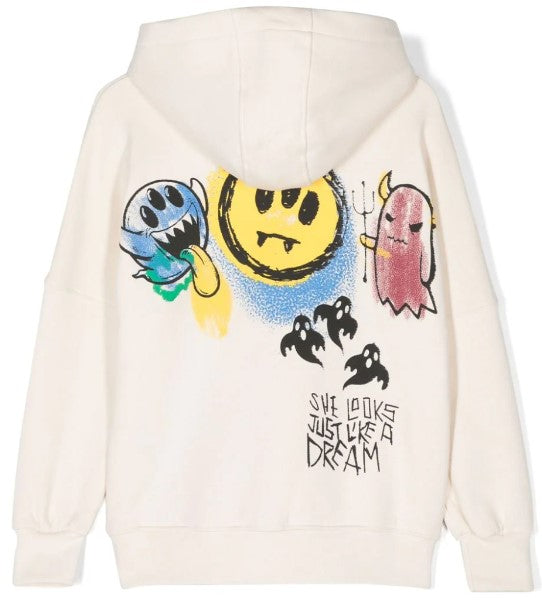 Kapuzen-Sweatshirt aus Fleece-Baumwolle, mit langen Ärmeln, Logo-Aufdruck auf der Vorderseite und Aufdruck auf der Rückseite, geripptem Saum und Bündchen.
