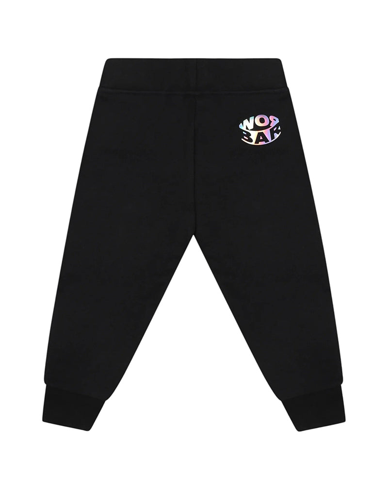 Pantaloni jogger neri da neonato, realizzati in cotone garzato. Presentano vita elasticizzata, fodera in pile, stampa Smile sul davanti, stampa logo sulla gamba e fondo con elastico alla caviglia.