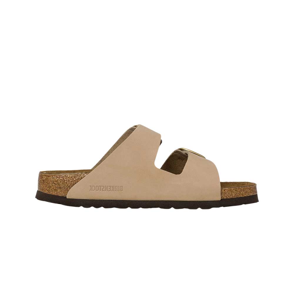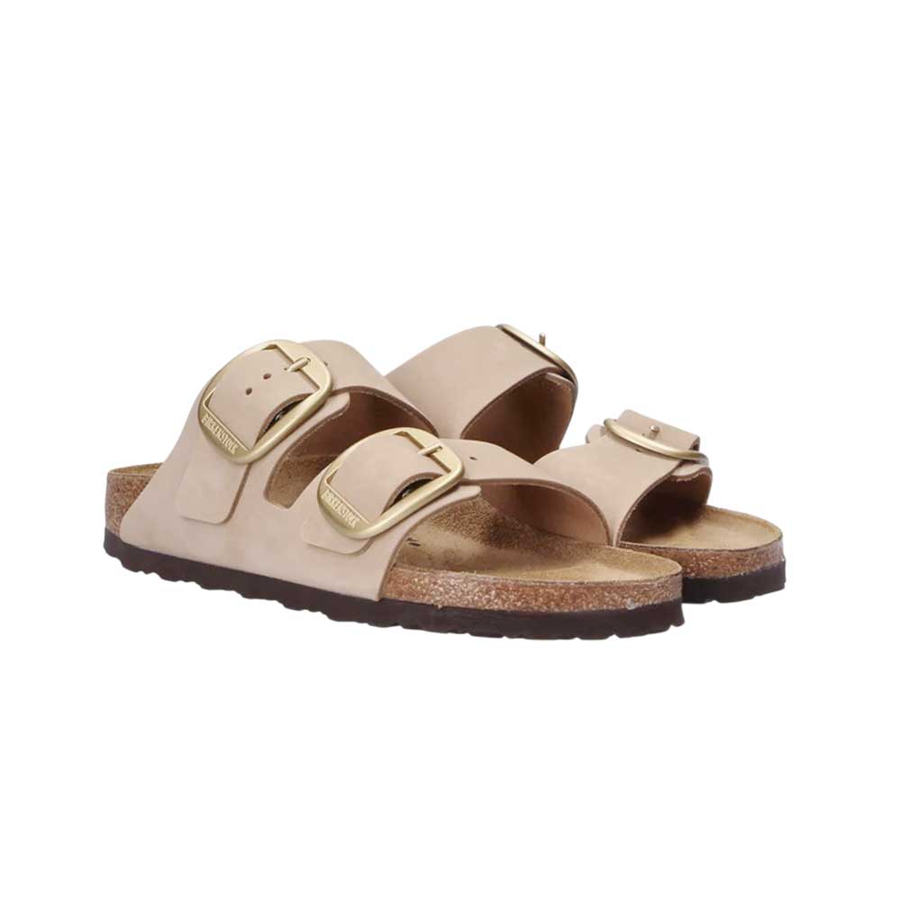 Risveglia il tuo spirito di avventura e di sfida con i sandali Arizona Big Buckle di Birkenstock! Realizzati in pregiata pelle nabuk sabbia, si abbinano perfettamente alla fibbia dorata. Il plantare anatomico in camoscio offre un comfort imbattibile. Affronta le tue giornate con grinta e stile!