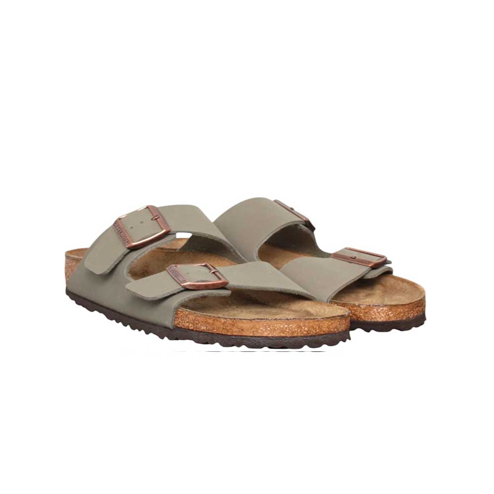 Aggiungi un tocco di avventura e natura ai tuoi piedi con i sandali Birkenstock Arizona in pelle scamosciata taupe. La morbida pelle scamosciata avvolge il piede come una seconda pelle, mentre il plantare anatomico in sughero e lattice assicura comfort e vestibilità ottimali. Le due fibbie di metallo regolabili aggiungono un tocco di eleganza e praticità. Sfida il tuo look con Birkenstock!