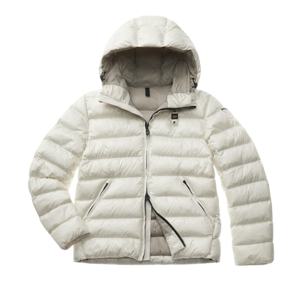 Giubbino Adams Junior realizzato in nylon, caratterizzato da design trapuntato a righe, imbottito con ovatta Sorona® Aura, cappuccio fisso con coulisse, chiusura frontale con zip a doppio cursore(Tg. 12-16 anni), maniche lunghe, foderato in nylon a contrasto, due tasche laterali con zip e coulisse sul fondo. È decorato con patch e passante con logo.