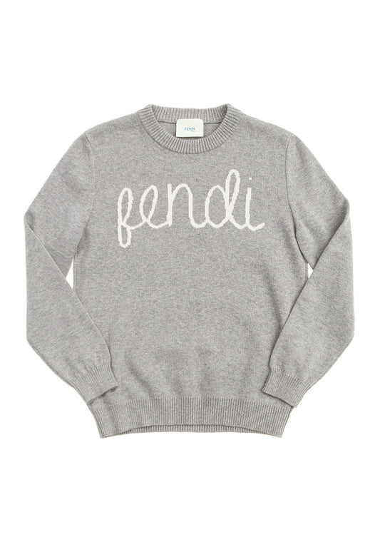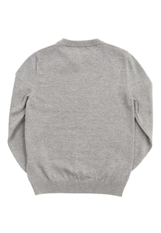 Pullover mit Rundhalsausschnitt, Verschlussknöpfen an der Schulter und kontrastierendem gesticktem Logo auf der Vorderseite.