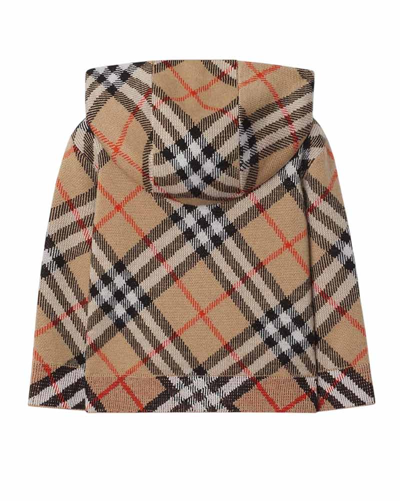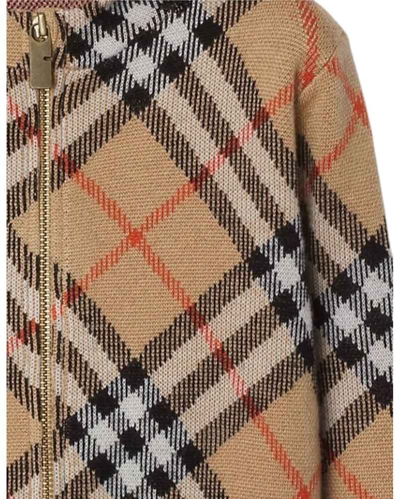 Cardigan con cappuccio in lana, con iconica fantasia Burberry Check in jacquard, caratterizzato da maniche lunghe, chiusura frontale con cerniera, due tasche laterali a filetto, polsi e orlo a costine.