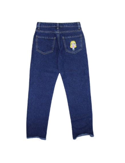 Jeans aus Baumwolldenim, Five-Pocket-Modell, Knopf- und Reißverschluss vorne. Symbol auf der Gesäßtasche gestickt.