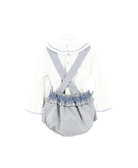 Doctor Kids Outfit bestehend aus Body und Culotte mit gestreift gemusterten Hosenträgern.