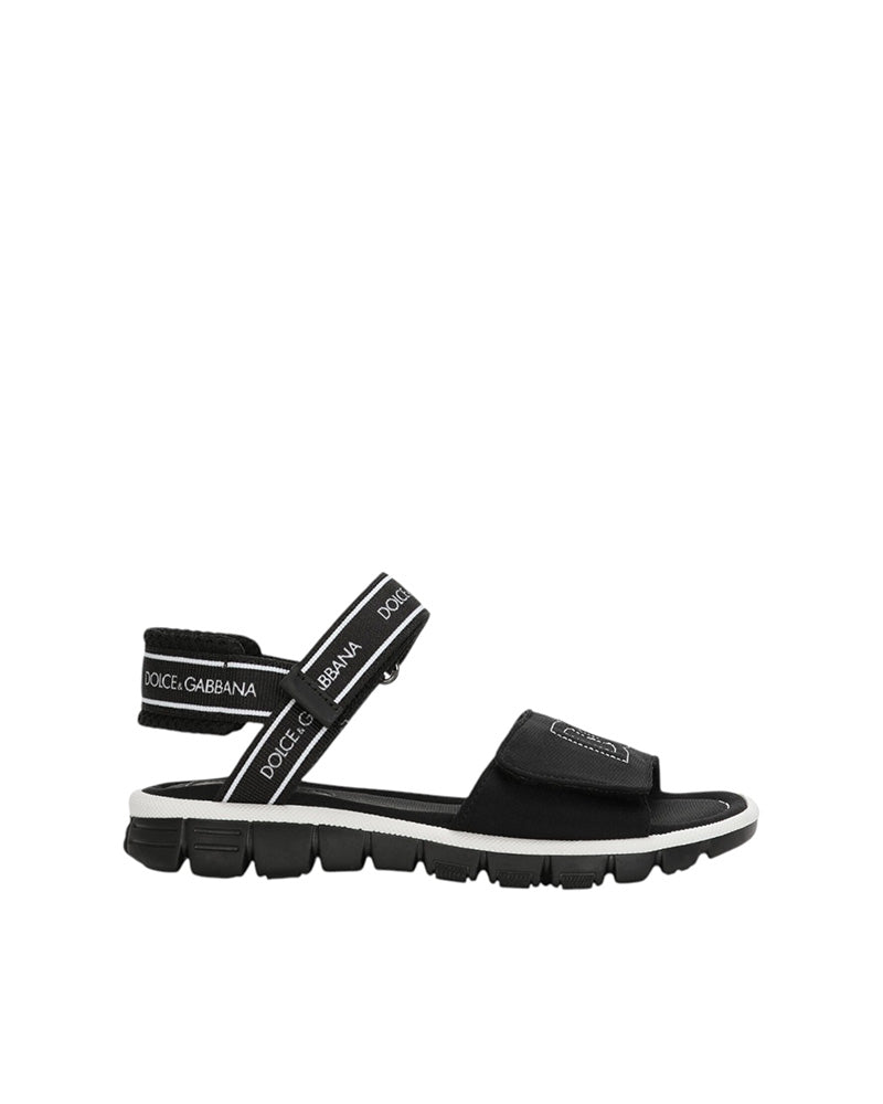 •Intersuola in tessuto tecnico con etichetta in pelle di vitello