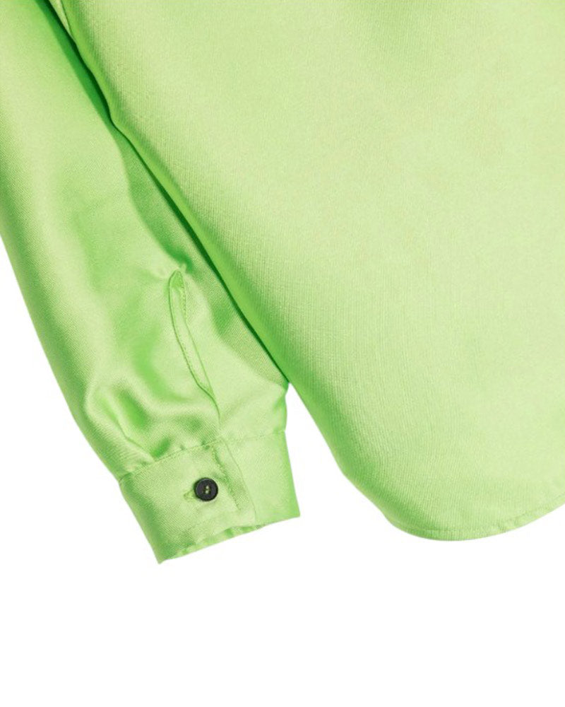 Camicia strutturata realizzata in tessuto effetto satinato. Presenta colletto a punta, chiusura frontale con bottoni, maniche lunghe e orlo curvo. È decorata con taschino applicato sul petto e stampa logo sul retro.