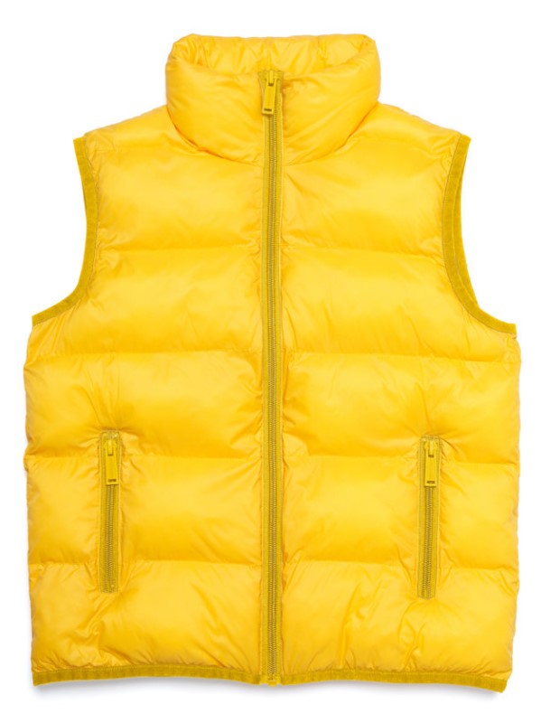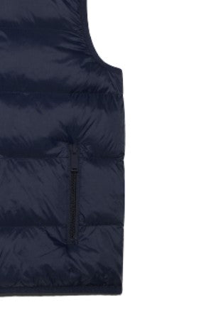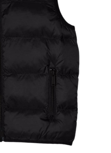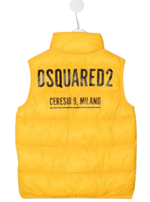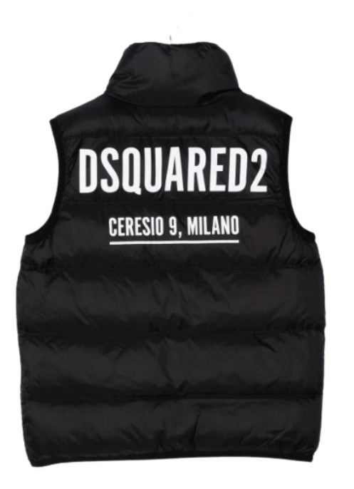 Gesteppte ärmellose Jacke von Dsquared2, Reißverschluss vorne, seitliche Leistentaschen, Logo-Print auf der Rückseite, elastischer Besatz.