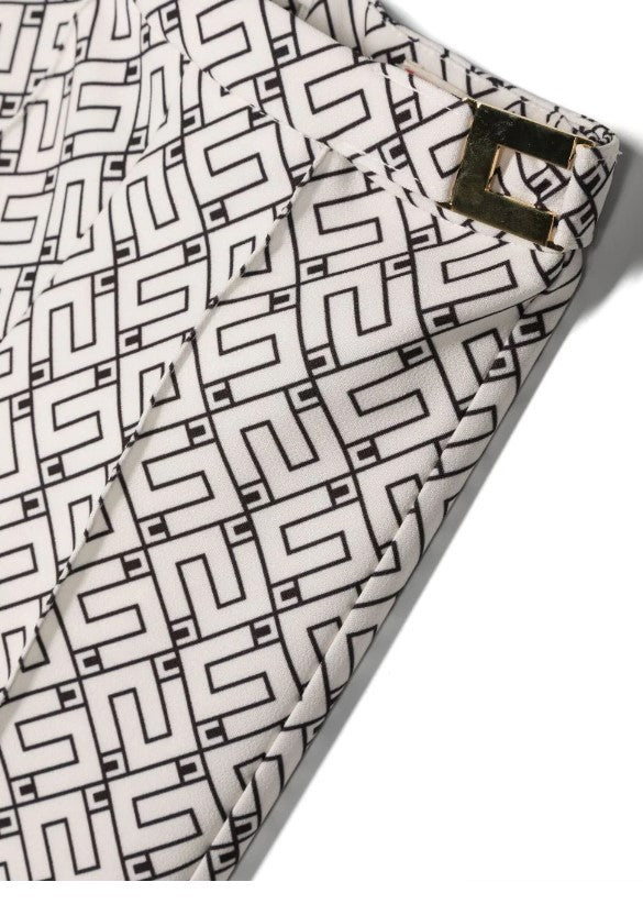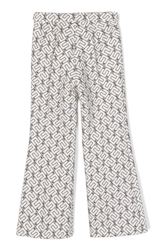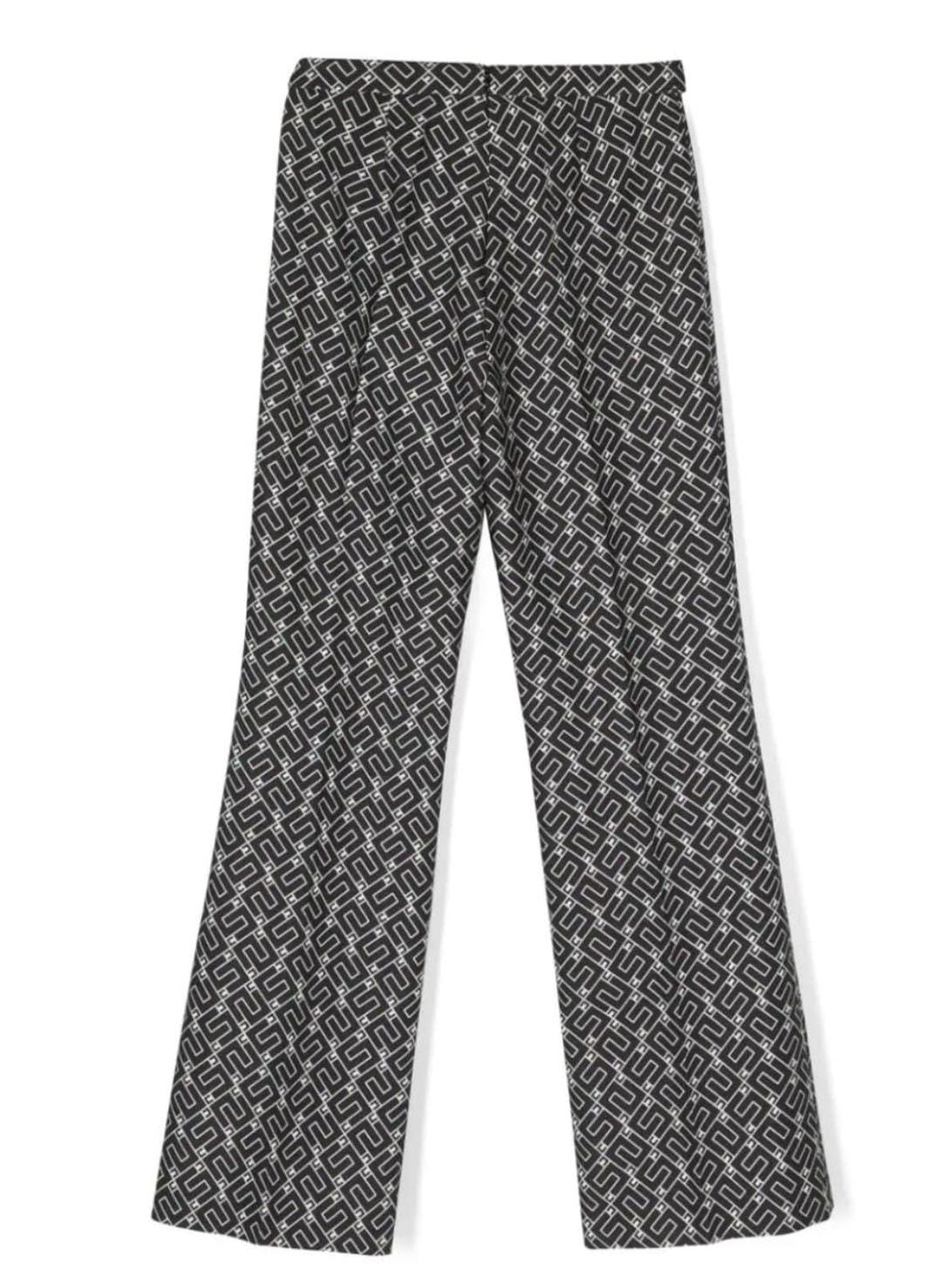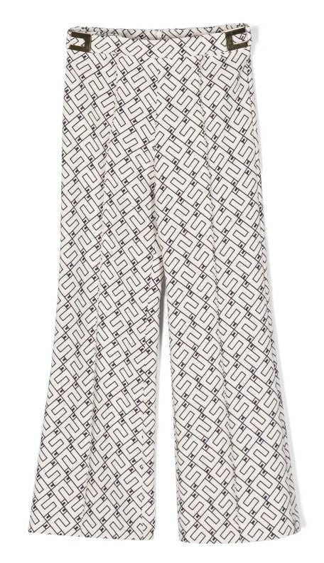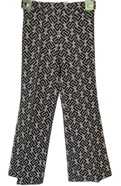 Ausgestellte Hose, Stoff mit durchgehendem Logo, fester Gürtel mit goldfarbenen Logo-Metallschnallen.