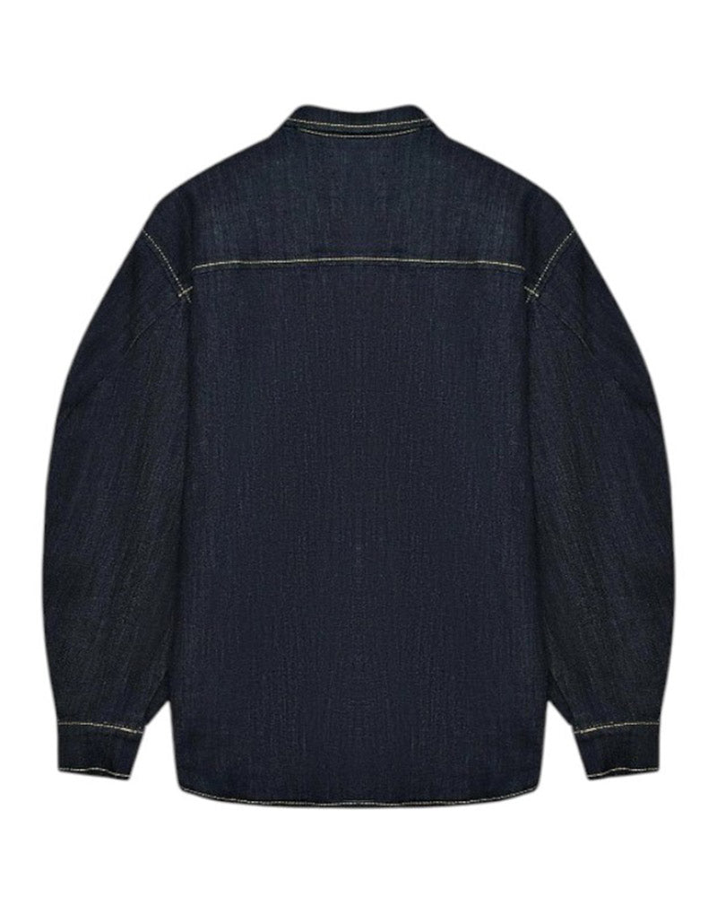 Camicia da bambina realizzata in denim di cotone con cuciture a contrasto. Presenta colletto a punta, chiusura frontale con bottoni a pressione e maniche lunghe. È decorata con taschino applicato sul petto e placca logo color oro.