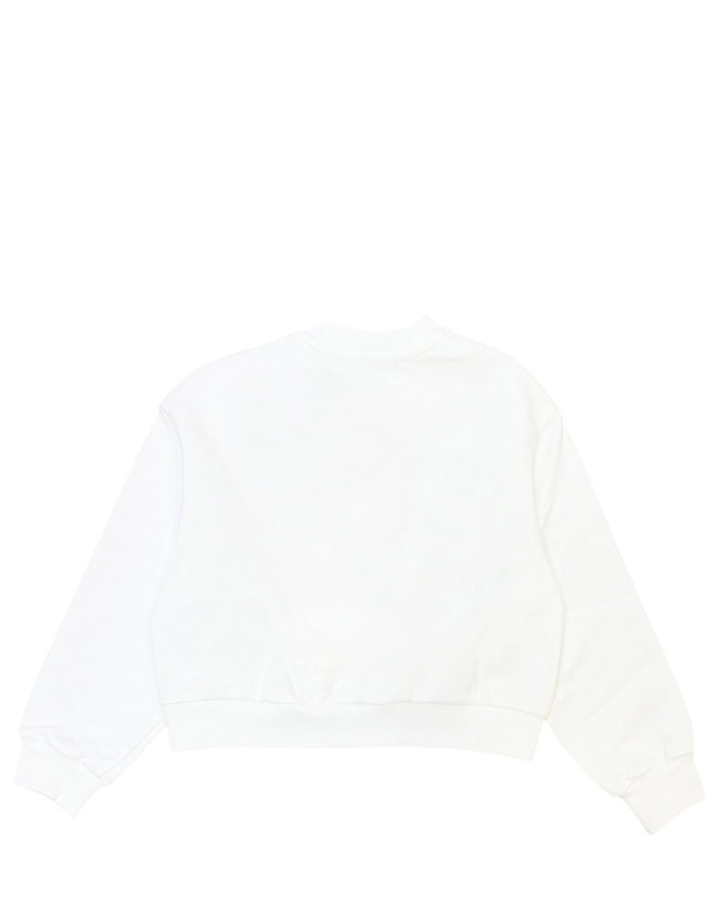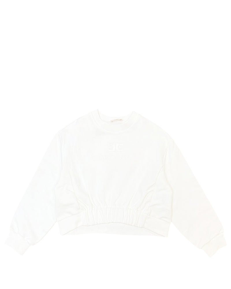 Felpa realizzata in cotone da bambina di Elisabetta Franchi La Mia Bambina. Modello cropped. Presenta collo tondo, maniche lunghe, simbolo del brand e logo ricamati tone on tone sul davanti, orlo con elastico sul davanti, finiture a coste.