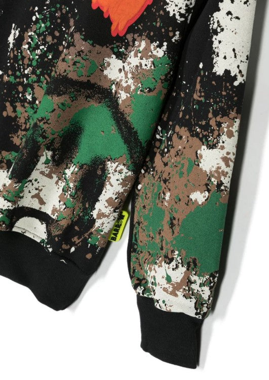 Langärmeliger Kapuzenpullover, Frontdruck, gerippter Saum.