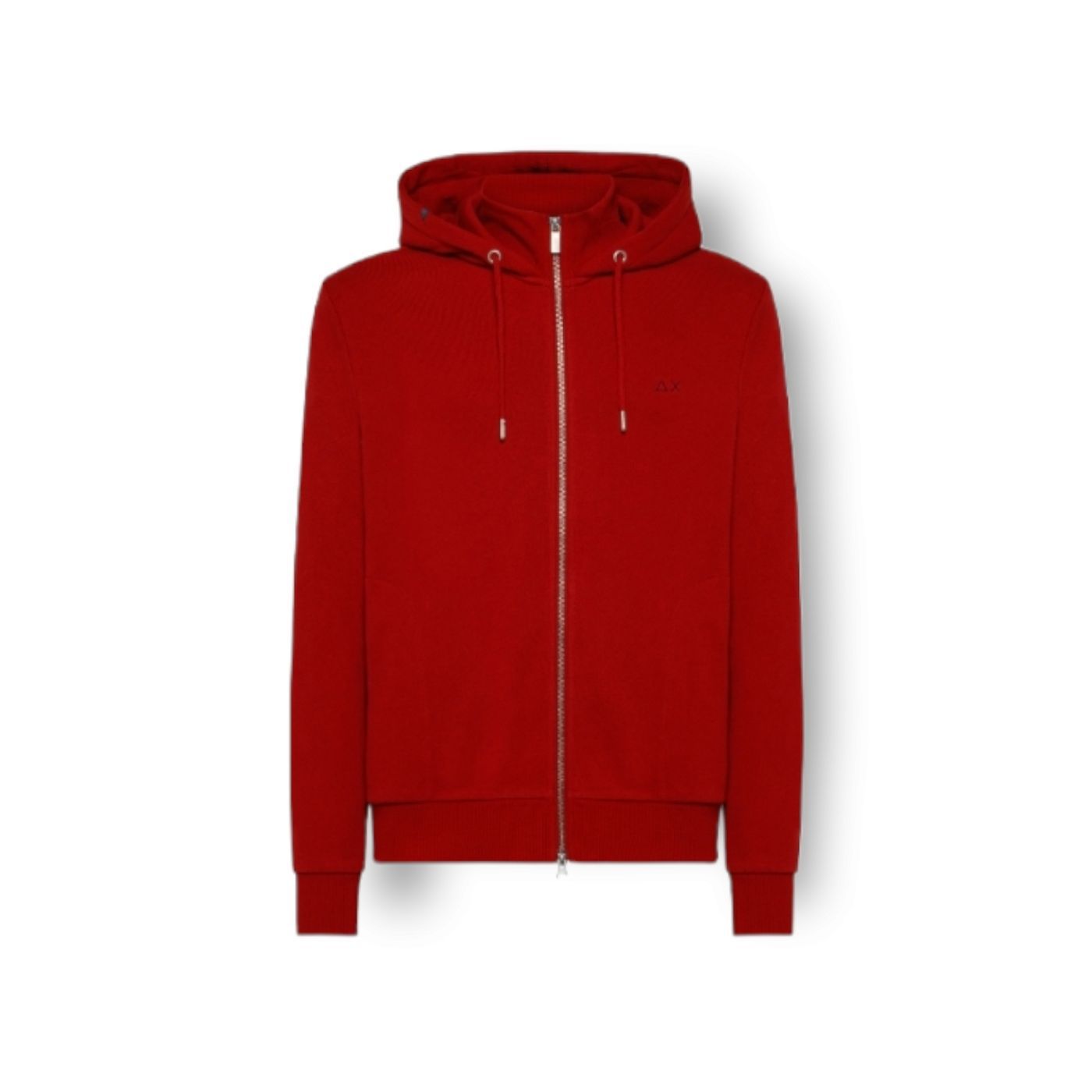 Sweatshirt mit Reißverschluss und Kapuze mit farblich abgestimmtem gesticktem Logo auf der Vorderseite.