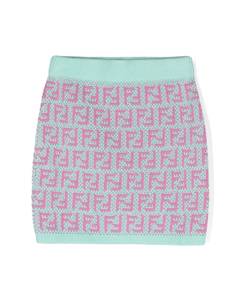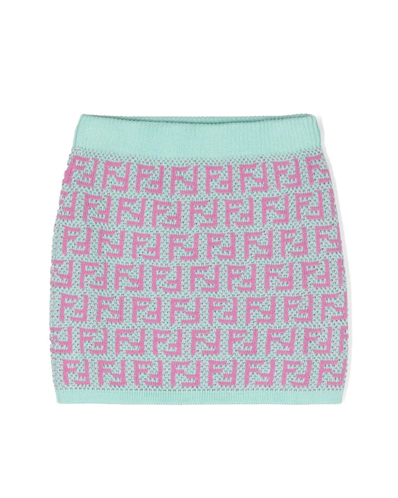 Minigonna realizzata in maglia, caratterizzata da vita elasticizzata e fantasia logo FF all-over.