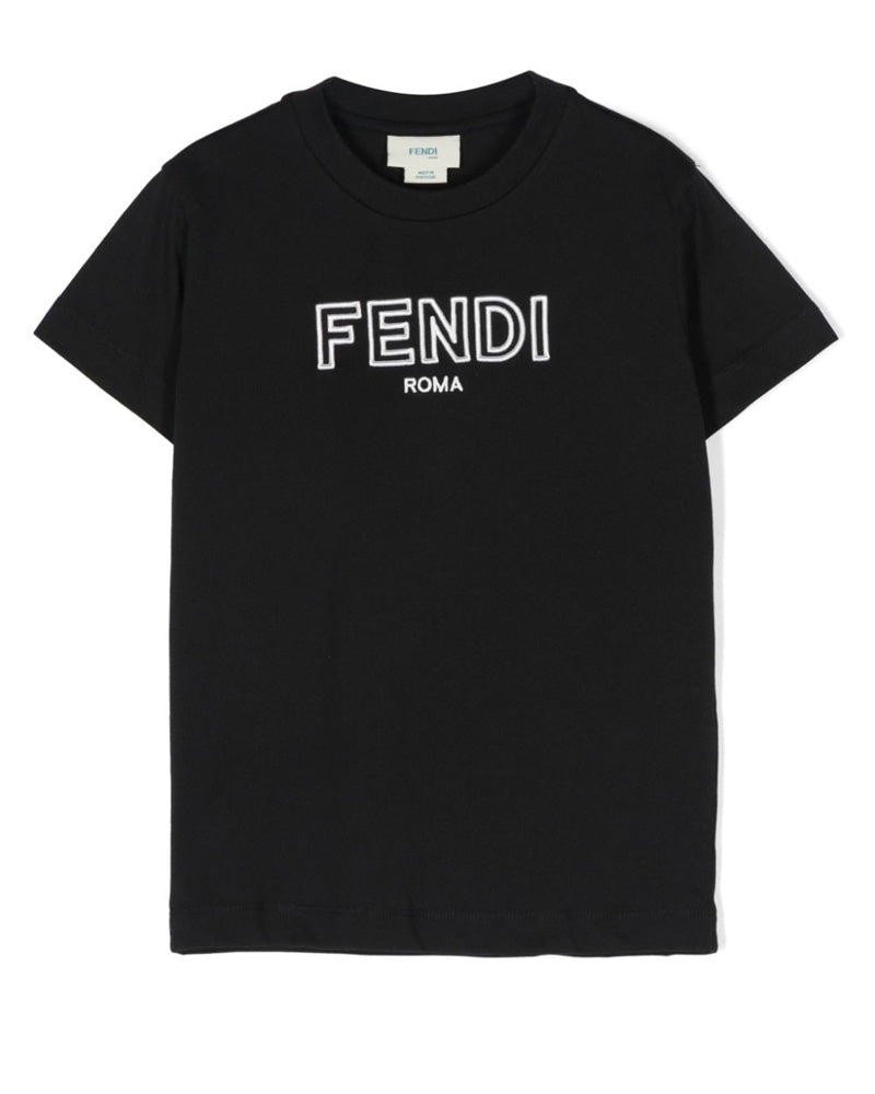 Dieses kurzärmelige T-Shirt mit Rundhalsausschnitt von Fendi besteht aus 100 % weicher Baumwolle und verfügt über ein geprägtes Logo auf der Vorderseite. Mit einem schlichten, aber raffinierten Design bietet dieses T-Shirt zeitlosen Komfort und Stil für jeden Anlass.