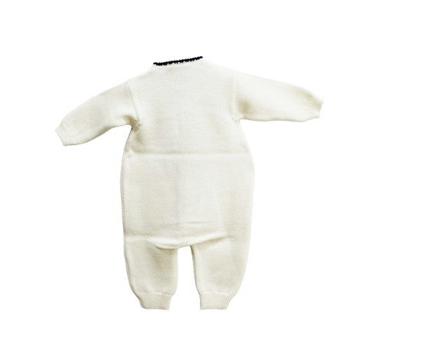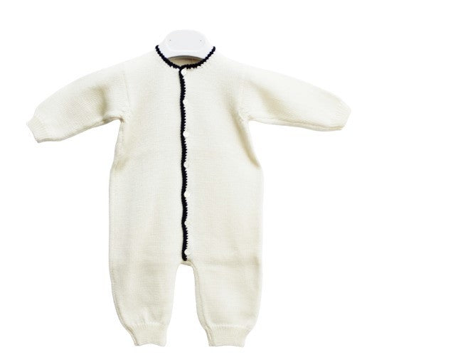 Herzerwärmender Einteiler mit blauem Rand am Hals und vorne.