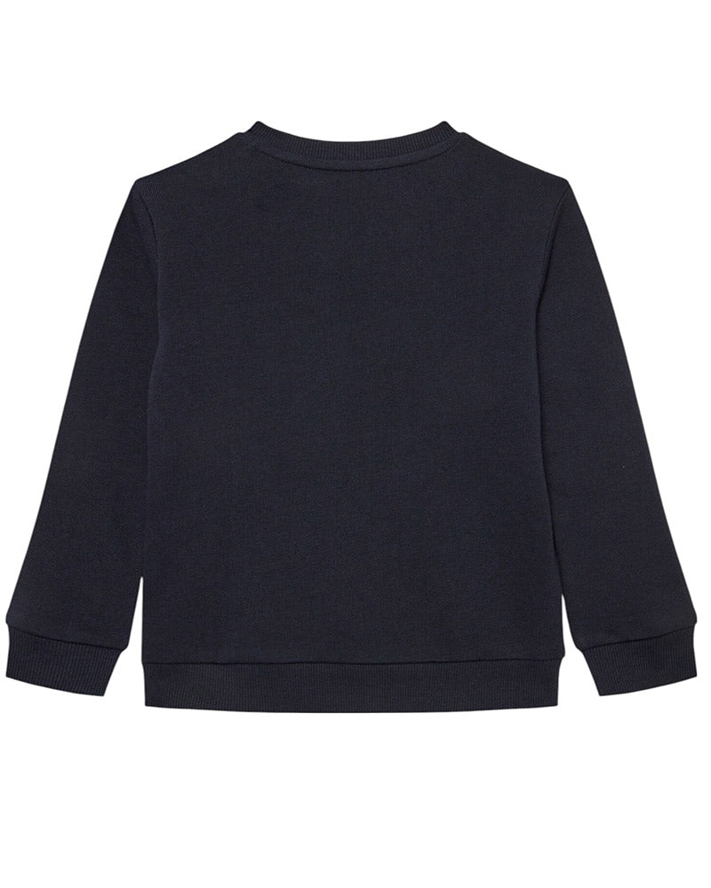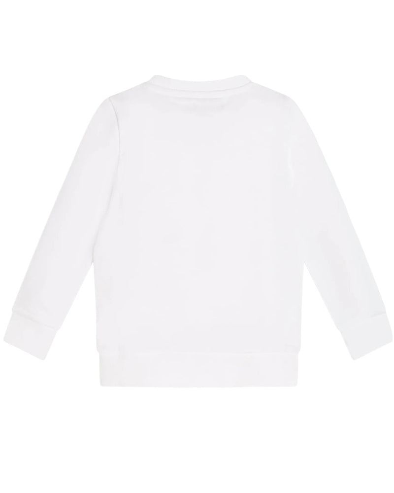 Felpa da neonato realizzata in cotone. Presenta collo tondo, chiusura con bottoncini sulla spalla, maniche lunghe, stampa logo sulla parte anteriore e finiture a coste.
