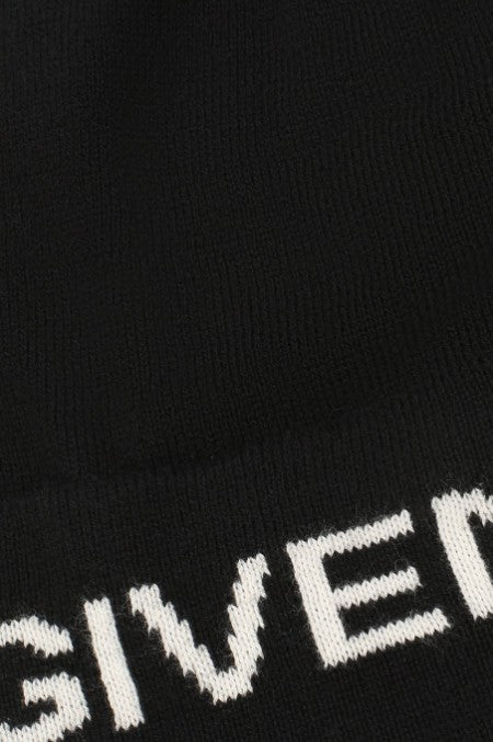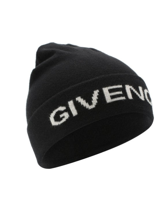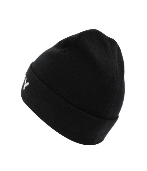 Einfarbige Strickmütze mit aufgesticktem Logo auf der Vorderseite.