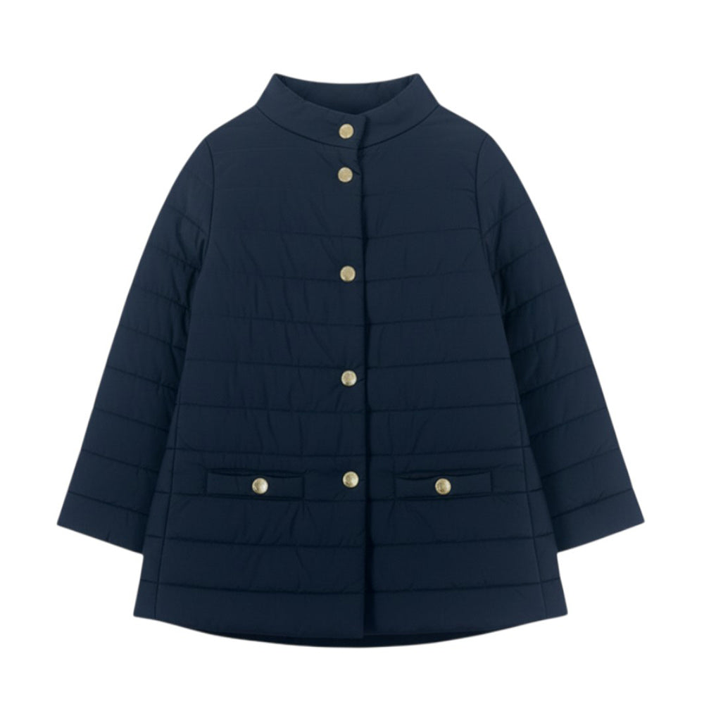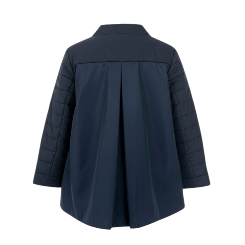 Giubbino 100 grammi, realizzato in nylon. Presenta design trapuntato, collo rotondo, chiusura anteriore con bottoni a pressioni logati, maniche lunghe, due tasche a filetto sul davanti e orlo dritto.