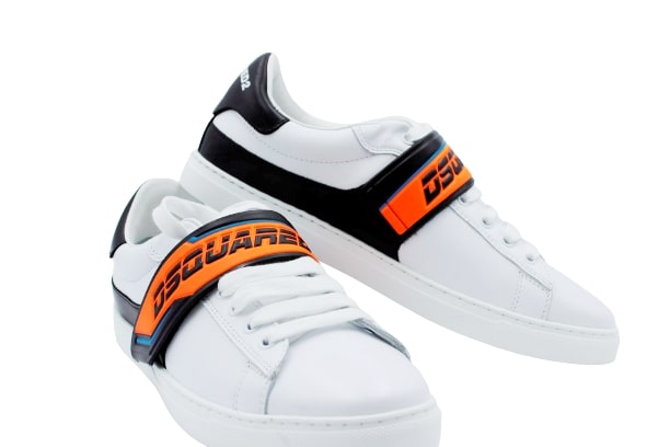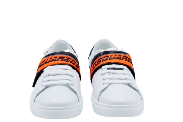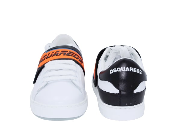 Dsquared2-Sneaker mit neonorangefarbenem Riss vorne.