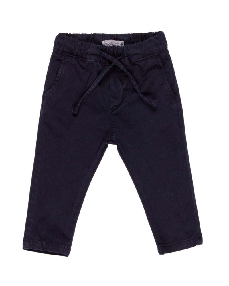 Pantaloni realizzati in misto cotone da neonato. Presentano vita elasticizzata con coulisse, tasche laterali all'americana e taschino applicato sul retro.