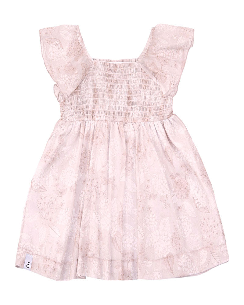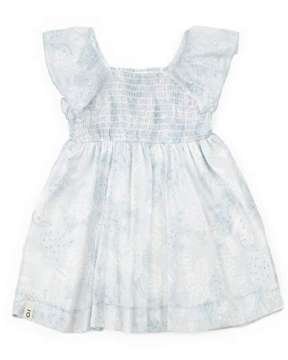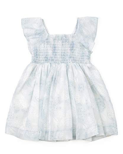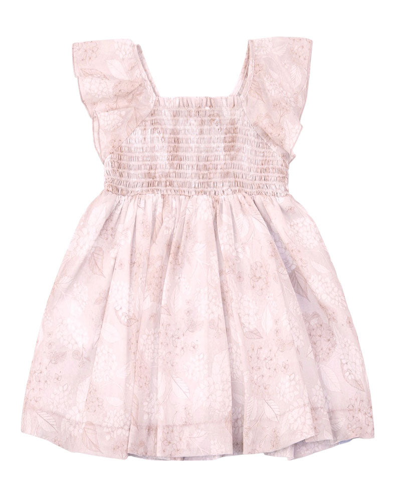 Abito realizzata in battista di cotone, romantica fantasia floreale, manica con ruches, bustino elasticizzato, maniche con ruches, gomma ampia.