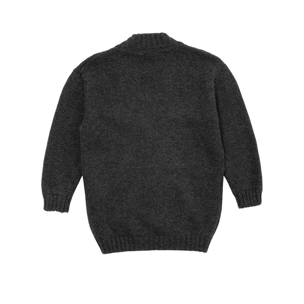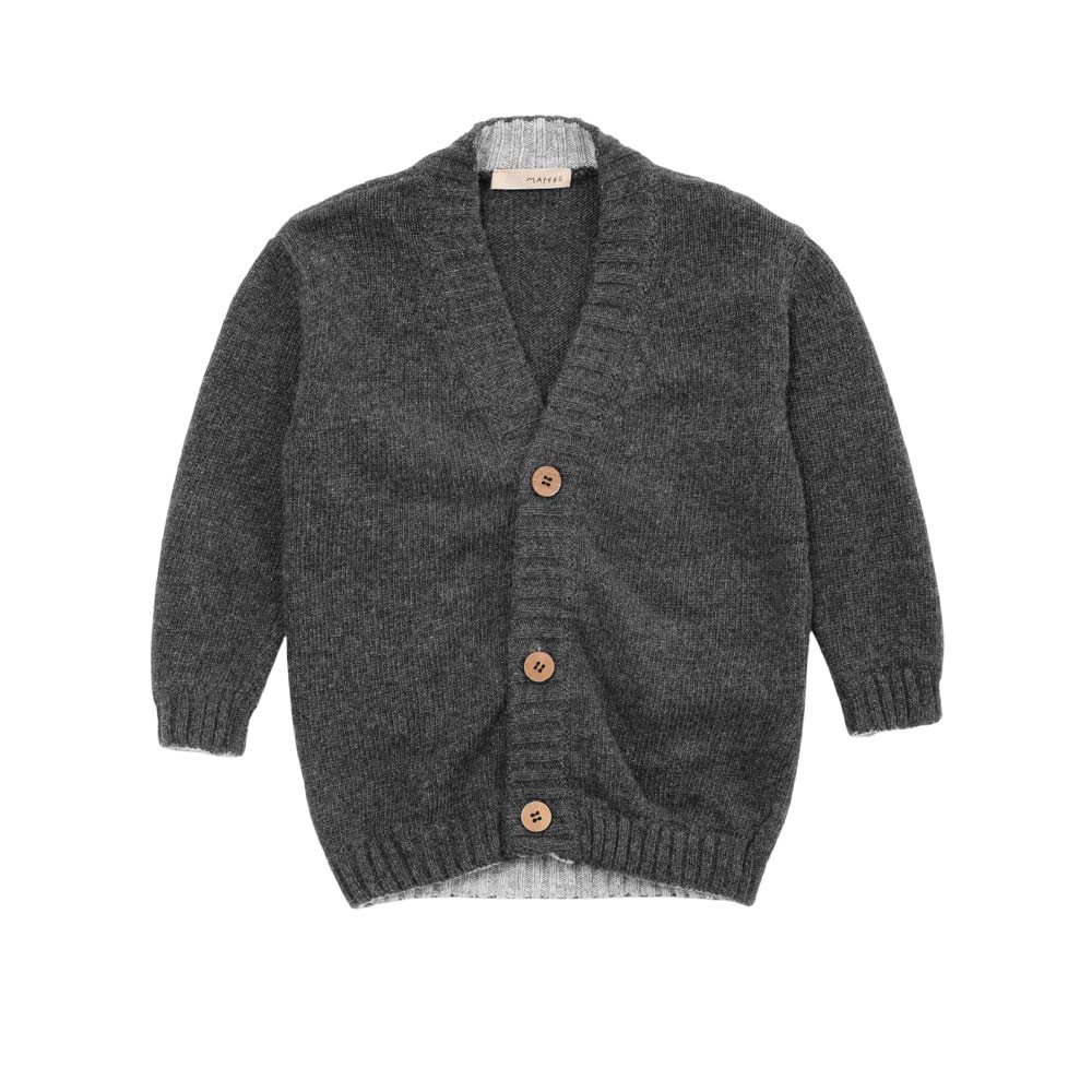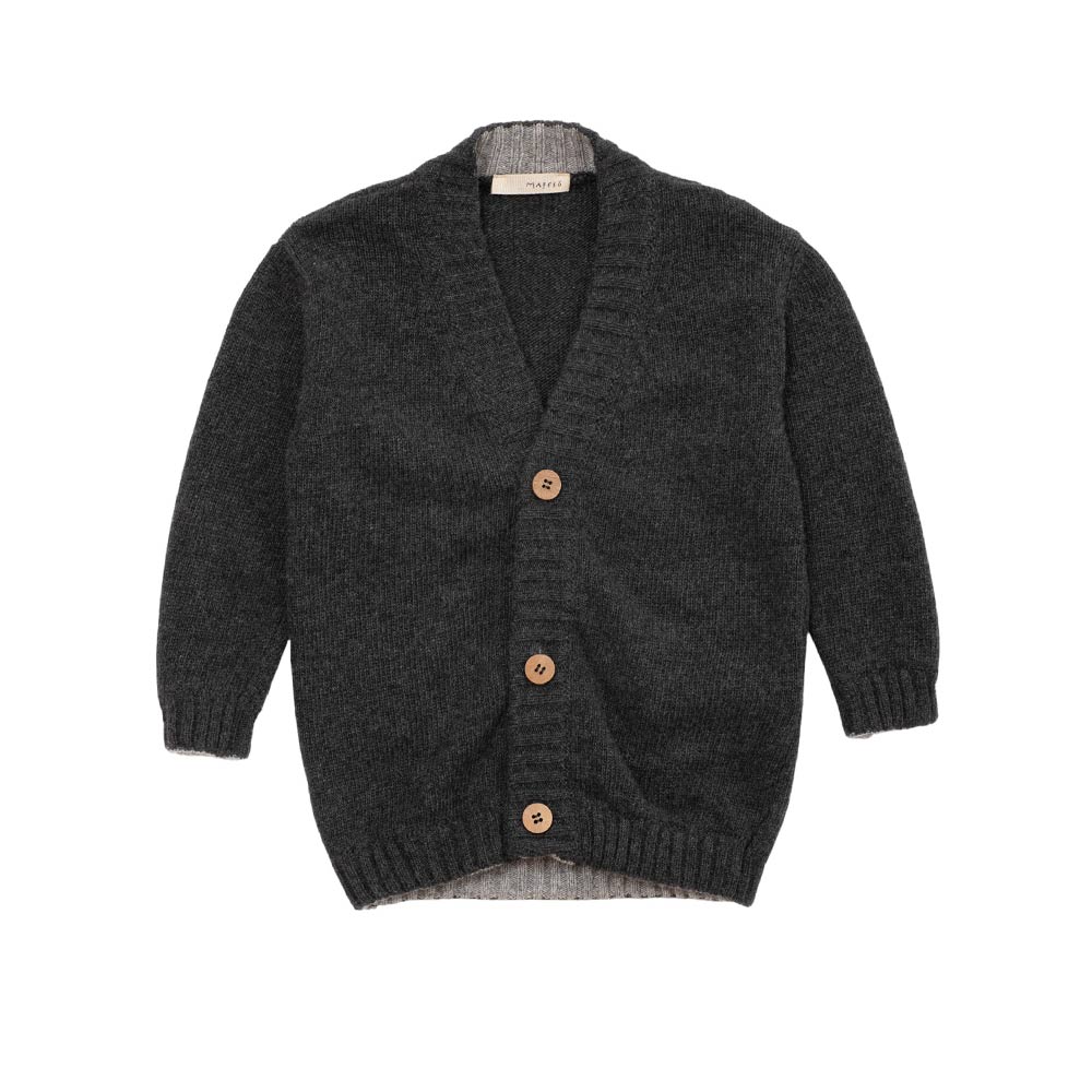 Cardigan realizzato in misto lana nerino, caratterizzato da scollo a V, chiusura frontale con bottoni, maniche lunghe, orlo dritto e finiture a coste.