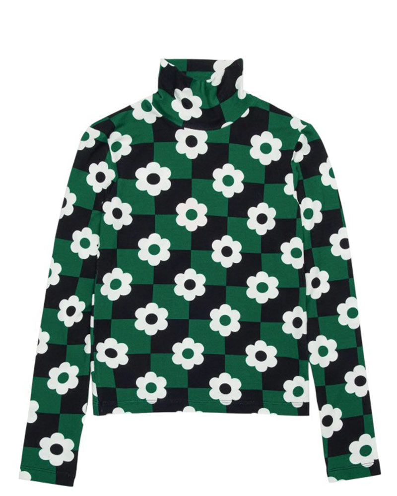 Lupetto a maniche lunghe verde da bambina realizzato in jersey con stampa floreale all-over.