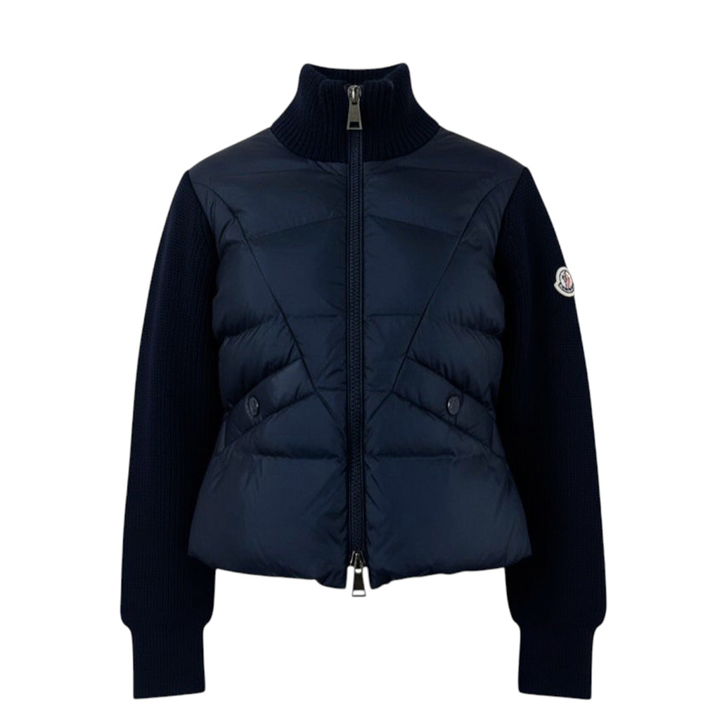 Wattierter Cardigan für Mädchen, Reißverschluss vorne, Seitentaschen mit Clips, Logo-Patch am Ärmel.