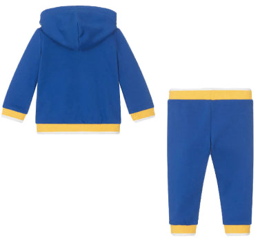Zweiteiliger Anzug aus Baumwollfleece. Bestehend aus langärmeligem Reißverschluss- und Kapuzensweatshirt, gesticktem Logo und Teddybär-Patch auf der Brust, zwei Fronttaschen. Joggerhose mit elastischem Bund und Knöchel, gesticktem Logo und Teddybär-Aufnäher auf der Vorderseite.