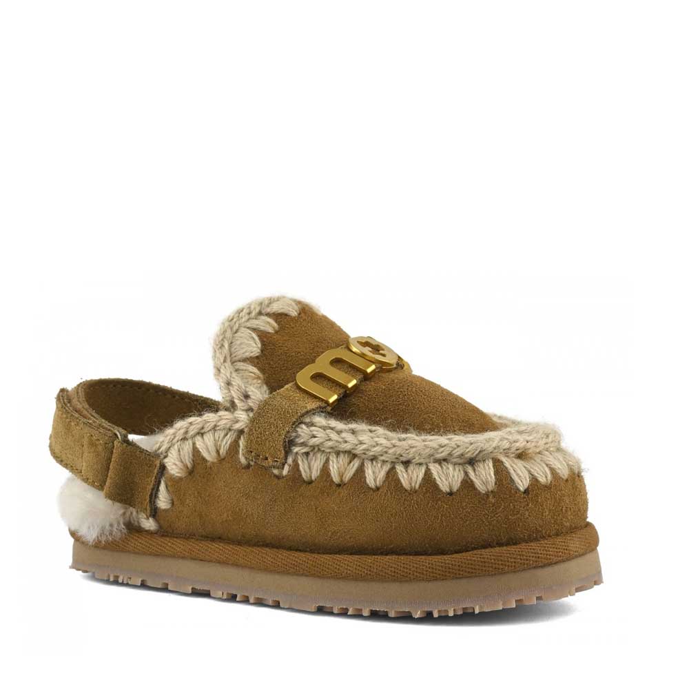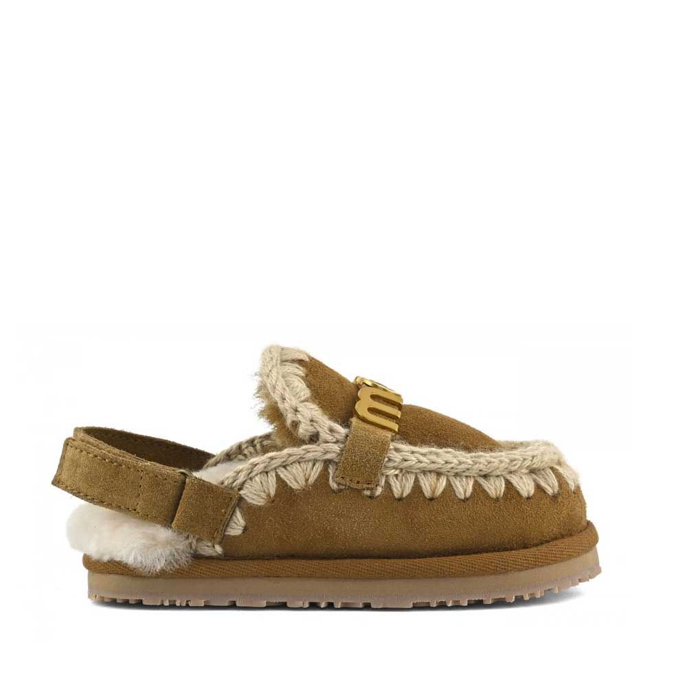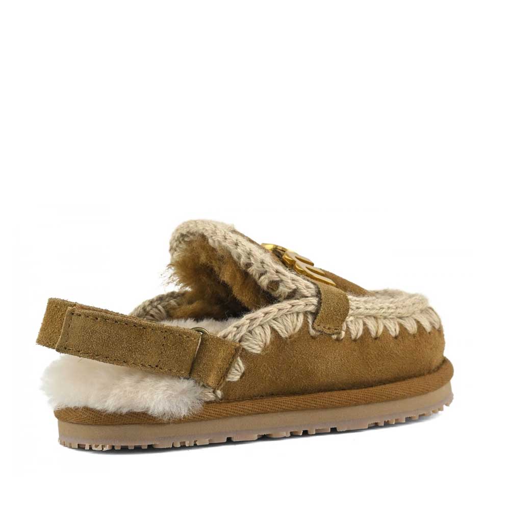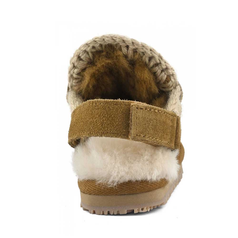 Mules MOU pantofola con cinturino alla caviglia e logo in metallo unisce comfort avvolgente e stile irresistibile, ideale per i giorni freddi dell'inverno. Sapientemente realizzata artigianalmente in vera pelle di montone double-face con gli inconfondibili dettagli in lana all'uncinetto firmati mou, questa comodissima pantofola presenta inoltre una leggerissima suola in EVA.