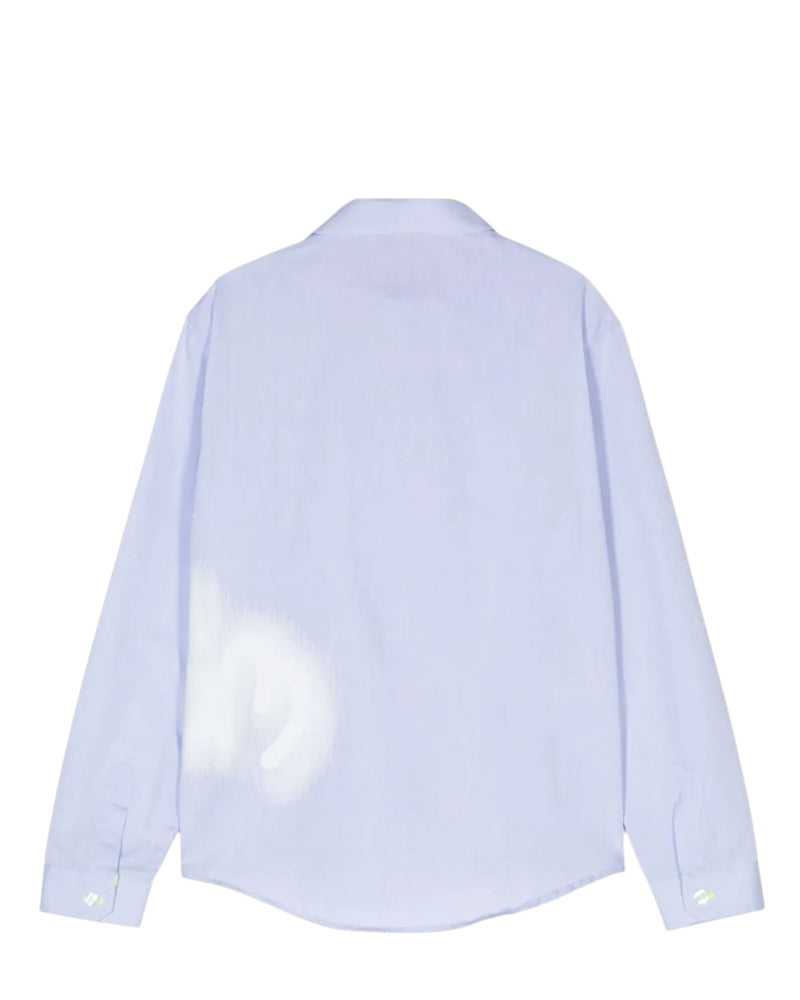 Camicia realizzata in popeline di cotone. Presenta colletto a punta, chiusura frontale con bottoni, maniche lunghe con bottoncino ai polsi, orlo curvo. È decorata con stampa logo sfumato sulla parte anteriore.